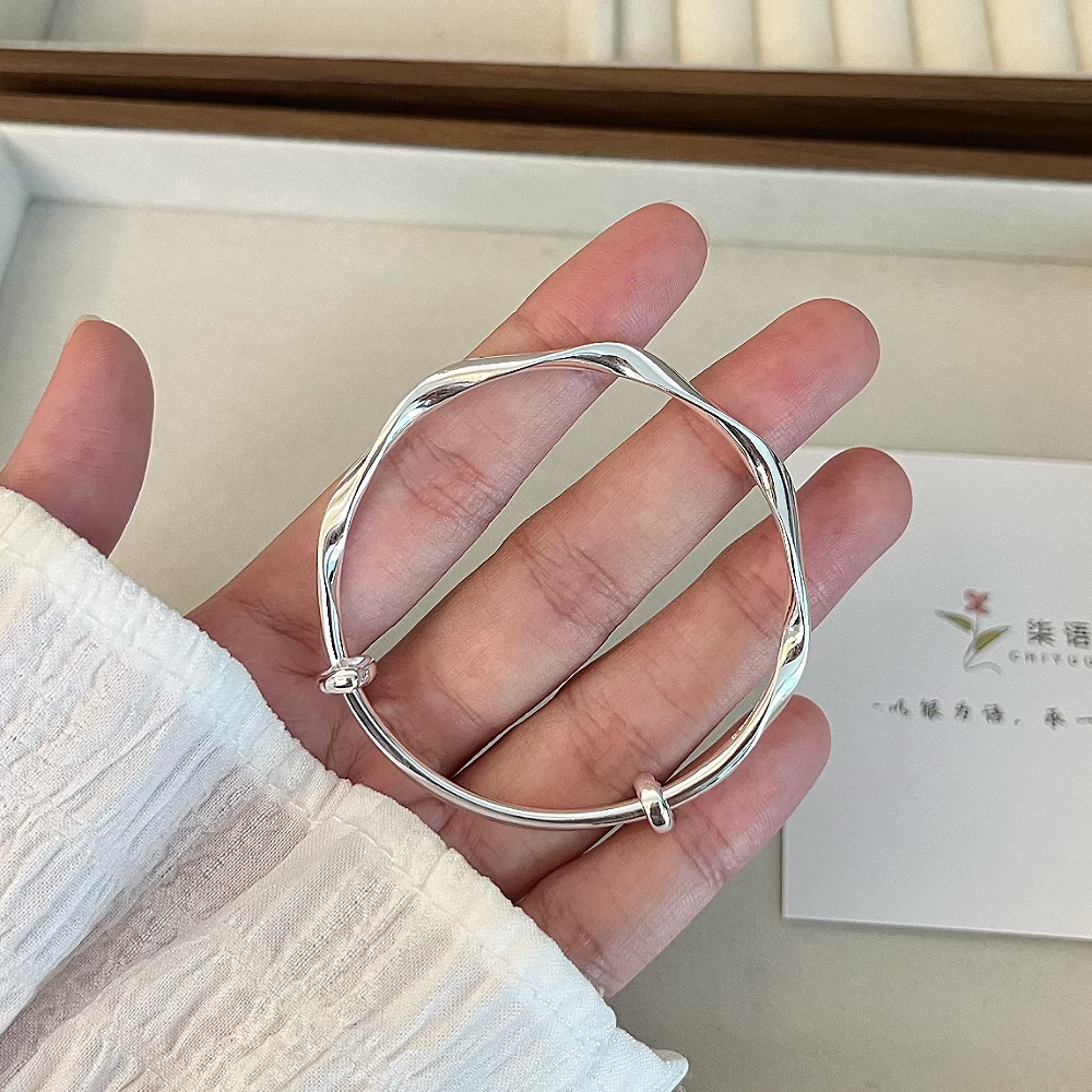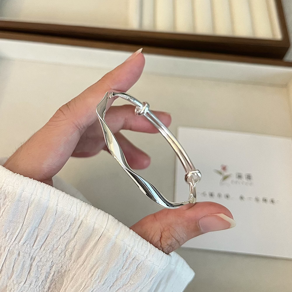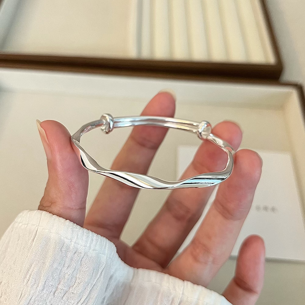 Weight: Approximately 13g Hallmark: Pure Silver 999.9 Certification: Each piece is accompanied by an official silver certification Type: Adjustable-pull bangle (Junior) Suitable Wrist Size: Fits smaller than 14cm wrists 克重:约 13g 钢印:足银999.9 证书:每一件均附国家级认证证书 款式:推拉手镯(中童) 适合手围:适用于小于14cm手围